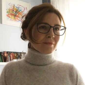 Trabaja con técnicas mixtas, combinando acuarela, collage, pastel, grafito y lápices de colores, y reserva el medio digital para los retoques finales.