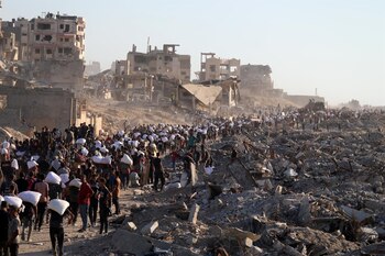 "La ocupación israelí ha cometido una nueva y sangrienta masacre contra civiles hambrientos en el norte de la Franja de Gaza. Al momento de emitir este comunicado, 51 personas han muerto y otras 647 han resultado heridos en tan solo tres horas. Se dirigían a recibir ayuda humanitaria entregada en camiones (...). Han sido atacados en la zona de Sudania", ha señalado la oficina de medios del Gobierno gazatí a través de su canal de Telegram.
