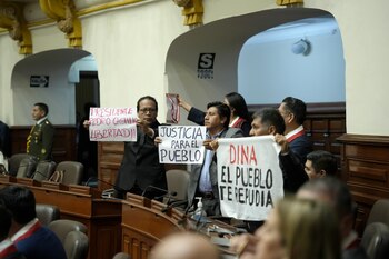 Además, se escucharon otras voces que gritaron "asesina, asesina" y el legislador Roberto Sánchez, quien fue ministro de Castillo, mostró un cartel en el que pidió la libertad del exmandatario antes de abandonar el recinto.