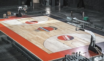 Este jueves se ha realizado por primera vez el montaje de su pista en modo baloncesto. Todo para preparar el estreno, con el primer partido oficial del club siendo el viernes 3 de octubre, con la visita de la Virtus Bologia italiana en la Euroliga masculina.