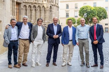 El presidente de la Real Federación Española de Fútbol (RFEF), Rafael Louzán, ha estado este miércoles en Logroño para la toma de posesión de Gustavo Sáenz y su equipo de trabajo al frente de la Federación Riojana de Fútbol (FRF), elogiando la aportación de esa comunidad autónoma al balompié nacional y destacando a figuras ilustres de dicha región.