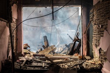 "Hoy es un día de luto en Járkov. Cinco personas han muerto", ha aseverado, al tiempo que ha tildado el ataque de "acto terrorista". "Estas son la consecuencias de dicho ataque", ha explicado, al tiempo que ha matizado que el objetivo era un "edificio residencial".