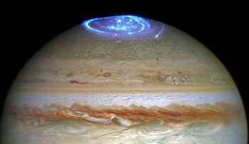 El espacio que rodea planetas magnetizados como Júpiter está lleno de plasma, un estado de materia sobrecalentado donde los átomos se descomponen en electrones e iones. Estas partículas se aceleran hacia la atmósfera del planeta, provocando que los gases se iluminen como una aurora. En la Tierra, esto es visible como las conocidas luces verdes y azules. Sin embargo, la aurora de Júpiter suele ser invisible a simple vista y solo puede observarse con instrumentos ultravioleta e infrarrojos.