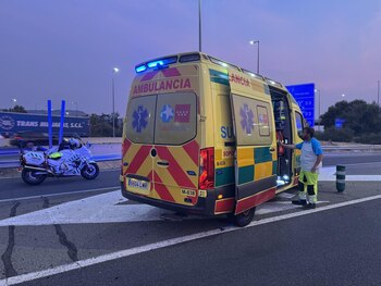 Efectivos de Bomberos de la Comunidad de Madrid también se han desplegado y aseguran la zona, después de que el motorista se saliese de la vía y chocase contra un panel de señalización, un hecho que ya está investigando la Guardia Civil.