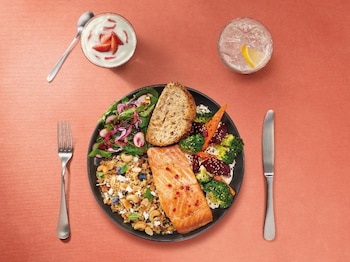 Siguiendo el modelo Harvard -50% vegetales, 25% hidratos de carbono y 25% proteínas-, el "Plato Perfecto" está compuesto por una base de proteína y tres guarniciones, combinando texturas, sabor y color, acompañadas de pan de masa madre, bebida y postre. Este nuevo menú ya está disponible a un competitivo precio, desde 15,95 euroS para la opción vegetariano y de pollo, y por +1,5euroS para la opción de salmón y roast beef.