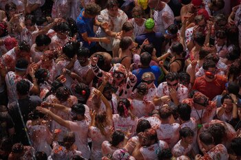 Una vecina de Buñol, en declaraciones a Europa Press, ha resumido lo que significa la Tomatina: "Para mí pura adrenalina, y la mejor fiesta que tenemos aquí; a la gente se la acoge como uno más del pueblo; abrimos las puertas a toda la gente de fuera. A Buñol nos afectó la dana pero es una demostración de que el pueblo sale adelante y esto va por toda la gente afectada, que podemos salir adelante y es una fiesta que no hace daño".