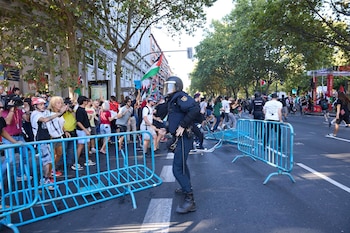 Marlaska ha deseado un "rápido restablecimiento" de los 22 agentes heridos este domingo y ha felicitado a la Policía Nacional "por el trabajo desarrollado" en una "una situación absolutamente compleja". Según él, actuó en "términos de proporcionalidad" garantizando la seguridad de ciclistas y ciudadanos y, a la vez, la protesta contra Israel por la guerra en Gaza que llevó a cabo "una sociedad comprometida con la paz en el mundo".