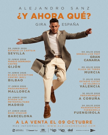 La fecha para conseguir las entradas para asistir a los conciertos de Alejandro Sanz en 2026, tanto en Sevilla como en Fuengirola (Málaga), será este jueves, 9 de octubre, a las 10,00 horas. Las actuaciones, dentro de la gira '¿Y Ahora Qué?', están programadas para el 6 de junio en la capital hispalense y el 24 de julio en la localidad malagueña.