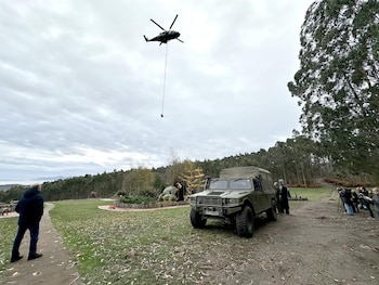 En esta actuación se ha utilizado un helicóptero NH90 (HT.29 en su designación militar española), con base en el acuartelamiento de Héroes del Revellín, en Agoncillo (La Rioja), que puede alcanzar una velocidad de 260 kilómetros por hora en operación y de hasta 300 en crucero. Además, ha participado personal de apoyo en tierra para realizar tareas de mantenimiento, preparación de cargas y repostaje.