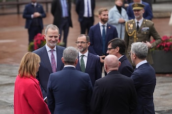 Le han recibido el presidente de la Generalitat, Salvador Illa; el alcalde, David Quirós; el secretario de Estado de Política Territorial, Arcadi España; el delegado del Gobierno en Catalunya, Carlos Prieto; la presidenta de la Diputación de Barcelona, Lluïsa Moret, y otros representantes del consistorio.