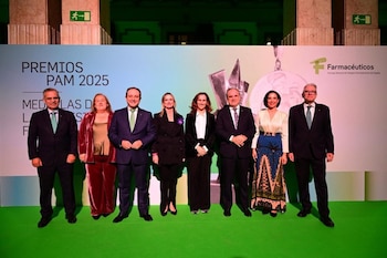 La profesión farmacéutica también ha entregado sus Medallas, que, en esta convocatoria, rinde tributo a los farmacéuticos Yolanda Barcina, catedrática y expresidenta del Gobierno de Navarra; Manuel Fuentes Rodríguez, que fue presidente del Colegio de Farmacéuticos de Granada y vicepresidente del Consejo General; José Félix Olalla, académico de la Real Academia de Farmacia de Cataluña y ex subdirector general de Medicamentos en el Ministerio de Sanidad; Cristina Tiemblo, que fue vocal nacional de Dermofarmacia y contadora del Consejo General de Farmacéuticos, y Francisco Zaragozá, catedrático y ex vocal nacional de Docencia e Investigación del Consejo General de Farmacéuticos.