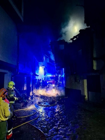 Concretamente, a consecuencia de este fuego registrado minutos después de las 20,00 horas de este pasado sábado, se ha producido el derrumbe total de una de las viviendas y el parcial de otra, sin tener que lamentar daños personales.