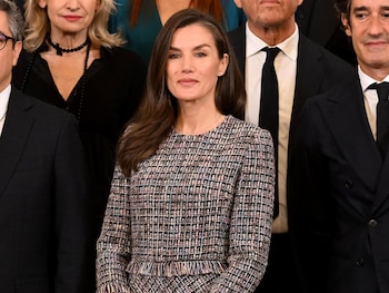 El medio detalló que, en el contexto de este compromiso institucional, la Reina Letizia optó por rescatar un atuendo que ya había utilizado previamente durante la entrega del Premio Cervantes en abril de 2024. La decisión de reutilizar este vestido cobra relevancia ante el contexto de la cita, ya que elegir una prenda de un diseñador concreto podría interpretarse como un posicionamiento dentro del sector, algo que Letizia ha preferido evitar para mantener la imparcialidad. El vestido, confeccionado en tweed, presenta características particulares: largo midi, falda con vuelo, manga francesa y cuello redondo, además de detalles desflecados en la cintura y en el remate de las mangas. Aunque a simple vista puede parecer gris, integra tonalidades en blanco, negro, azul y malva.