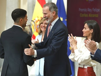 "El premio es no rendirse nunca: el tenista más jóven de la historia en lograr los cuatro Grand Slam" ha escrito la Casa Real en una de sus historias de Instagram para felicitar al murciano por su último logro. "¡Enhorabuena y gracias por seguir escribiendo la historia del deporte español!" añade la publicación destacando el gran esfuerzo y trabajo de superación que está haciendo Carlos Alcaraz a pesar de su juventud.