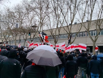 Entre gritos de "Presa, vete ya" o "Presa no, Rayo sí", los seguidores rayistas han clamado contra la directiva actual del club en una manifestación a la que se han unido algunos hinchas del Real Oviedo que se desplazaron hasta Madrid antes de que se anunciase la suspensión del duelo.