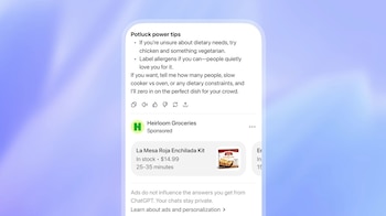 Como ha explicado la tecnológica en un comunicado en su blog, estos anuncios no influyen en las respuestas que proporciona ChatGPT, simplemente se añaden al final de la respuesta de forma separada como un enlace "patrocinado". Por ejemplo, si se está preguntando por una receta, los usuarios podrían ver un enlace patrocinado de utensilios de cocina.