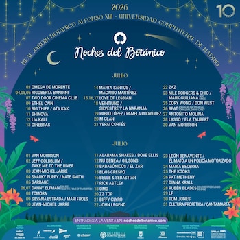 La cita, que se celebrará entre junio y julio de 2026 en el Real Jardín Botánico Alfonso XIII de la Universidad Complutense de Madrid, congregará a más de 60 artistas -18 de ellas mujeres- y un total de 54 conciertos. Así, cierra su programación con Tom Jones, Van Morrison, Nile Rodgers & Chic, Snarky Puppy, Pat Metheny o LP.