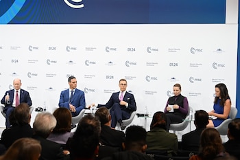 Durante su intervención en la mesa redonda '¿A la par? Fortaleciendo las bases de la seguridad transatlántica' desarrollada la Conferencia de Seguridad de Múnich, Sánchez ha remarcado que España ha triplicado su gasto en defensa respecto al PIB en los últimos años y duplicado el número de efectivos militares desplegados en misiones de la OTAN.