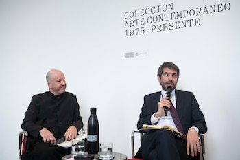 Bajo el título 'Arte contemporáneo: 1975-presente', el relato arranca en el año 1975 con la obra 'Documento nº...' (1975) de Juan Genovés. Para el ministro de Cultura, Ernest Urtasun, esta elección "no es baladí", ya que sitúa el inicio en los debates sobre "la conquista de la democracia y lo que significa el arte contemporáneo" en esta etapa, como ha dicho este lunes en la presentación de la colección.