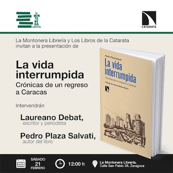 Durante trece meses en Caracas, Pedro Plaza Salvati permaneció confinado en medio de las restricciones y la incertidumbre provocadas por la pandemia de COVID-19, un periodo que le permitió ofrecer una mirada transformadora sobre la vida en la capital venezolana. Según informó la librería La Montonera, este relato personal y social constituye el eje de "La vida interrumpida. Crónicas de un regreso a Caracas", libro que será presentado este sábado 21 de febrero a las 12.00 horas en Zaragoza. Junto al autor, participará en el evento el escritor y periodista cultural Laureano de Bat, quien entablará un diálogo con Plaza Salvati acerca del testimonio vivido y las impresiones recogidas durante ese tiempo excepcional.