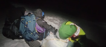 La Guardia Civil ha rescatado a cuatro jóvenes, tres adolescentes y un menor de edad, que habían caído por la ladera norte del pico Peñalara, en Segovia, y tuvieron la suerte de que uno de ellos pudo frenar al grupo con un piolet, por lo que quedaron colgados sin poder moverse y evitaron una caída por la ladera de cerca de 300 metros.