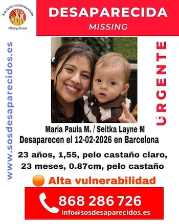 Las comunicaciones de WhatsApp entre María Paula M. y su familia tras su desaparición resultaron esporádicas y cortas, y cesaron de forma intermitente en los días posteriores al incidente, lo que ha incrementado la inquietud sobre su situación. La joven de 23 años y su hijo Seitka Layne M., de apenas 23 meses, fueron vistos por última vez el 12 de febrero en las instalaciones de una residencia de servicios sociales en Barcelona. Desde esa fecha, no se ha confirmado su paradero ni se dispone de información clara sobre su ubicación, tal como detalló la asociación SOS Desaparecidos.