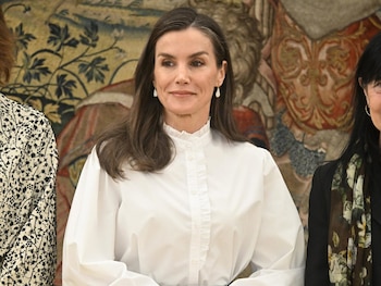 Para completar el atuendo, la Reina Letizia eligió unos botines negros de tacón bajo y cuadrado, además de unos pendientes de cerámica blanca en forma de lágrima con engarce dorado, que la fuente señala como una de sus novedades de accesorios en la jornada. El conjunto refuerza la vinculación que mantiene la monarca con diseñadores de prestigio y su apuesta por prendas atemporales, detalló el medio original.