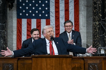 El discurso de Trump estuvo acompañado de un gesto dirigido a sus asistentes: pidió que se pusieran en pie quienes coincidieran con la idea de que “el primer deber del Gobierno estadounidense es proteger a los ciudadanos estadounidenses, no a los inmigrantes ilegales”. Según reportó el medio internacional, solo los representantes y simpatizantes republicanos reaccionaron ante la petición, mientras que los legisladores demócratas permanecieron en sus asientos, lo que provocó una reacción de desaprobación por parte del exmandatario, quien expresó que “deberían avergonzarse de no ponerse de pie”.