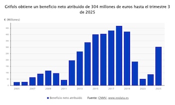 Grifols registró un beneficio neto de 402 millones de euros durante el ejercicio 2025, lo que representa un crecimiento interanual del 156%. El medio informó que, durante el mismo periodo, los ingresos totales ascendieron a 7.524 millones de euros, cifra que supone un incremento del 7% ajustado a tipo de cambio constante y del 9,1% en términos comparables, en relación con el ejercicio anterior.
