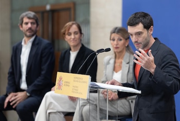 El portavoz de Sumar y ministro de Cultura, Ernest Urtasun, manifestó a través de Cadena Ser su respaldo a la postura del Gobierno y cuestionó si PP y Vox van a alinearse con el sentir mayoritario del pueblo español. Urtasun instó a Alberto Núñez Feijóo, líder del Partido Popular, a aclarar si su formación respalda a "los agresores y quienes pisotean el derecho internacional".
