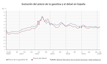 El precio medio del litro de diésel en España se encuentra por debajo del nivel registrado justo antes del inicio de la invasión rusa a Ucrania el 24 de febrero de 2022, cuando alcanzaba los 1,479 euros por litro, mientras que el precio de la gasolina sigue por debajo de los 1,591 euros de entonces. A pesar de la reciente escalada, ambos carburantes todavía mantienen un coste significativamente menor en comparación con los máximos alcanzados durante el verano de 2022, cuando la gasolina subió hasta los 2,141 euros y el diésel llegó a los 2,1 euros por litro. Esta evolución refleja la persistencia de precios elevados, pero también señala que el coste para los consumidores, aunque en aumento, no ha vuelto a los registros más altos de los últimos años. Según datos del Boletín Petrolero de la Unión Europea recogidos por Europa Press, el aumento de los precios de los combustibles en España ha mostrado una tendencia sostenida durante siete semanas consecutivas, impulsado principalmente por la volatilidad asociada al conflicto en Irán y la crisis en Oriente Próximo.