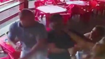 Furiosa, la recién llegada va directo a la mesa y agarra de los pelos a la rubia. Es que la joven es, supuestamente, la amante de su novio. El hombre también recibe golpes. Ambos terminan en el piso.
