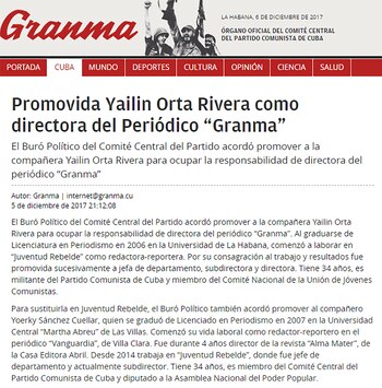 Esta militante del PCC y miembro del comité nacional de la Unión de Jóvenes Comunistas dirigía hasta ahora el otro diario del país, Juventud Rebelde, donde escaló rápidamente todos los peldaños desde su salida de la universidad de Periodismo en 2006, precisó Granma en un comunicado publicado este miércoles.