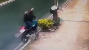 El impacto fue tan violento que partió el casco que llevaba el motociclista para proteger su cabeza, como muestra el video registrado por una cámara de seguridad.