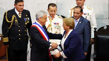 Tal y como hace ocho años, cuando puso fin a una hegemonía de gobiernos de izquierda, Piñera recibió la banda presidencial de parte de Bachelet, quien le lega un paquete de reformas sociales, algunas aprobadas y otras aún en trámite, con las que intentó borrar los cimientos instalados por la dictadura de Augusto Pinochet (1973-1990).