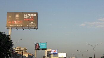 Un letrero de unos 10 metros de alto en la Avenida Javier Prado, una de las principales arterias de Lima, en donde las principales marcas colocan sus anuncios, llevaba el rostro de Nicolás Maduro y de Raúl Castro al lado del siguiente mensaje: se buscan por crímenes contra la humanidad.