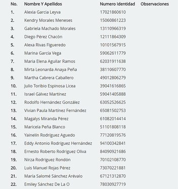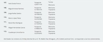 La prensa oficial de Cuba difundió un listado completo con los nombres de los 102 cubanos y 11 extranjeros que viajaban en el avión Boeing 737 que se estrelló en La Habana el viernes al mediodía, poco después de despegar del aeropuerto internacional José Martí.
