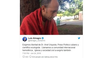 Mediante su cuenta de Twitter, el político uruguayo extendió el llamado a la comunidad internacional del continente, a la Iglesia cubana y a la sociedad civil a exigir a las autoridades del régimen la libertad del joven científico cubano.
