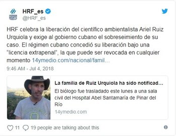 Human Rights Foundation (HRF) celebró la liberación del científico y exigió al gobierno cubano el sobreseimiento de su caso.