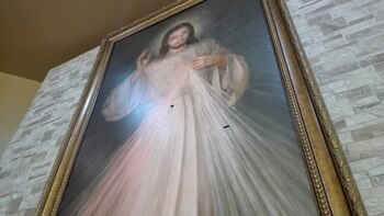 La única luz que esa noche y madrugada quedó encendida en todo el templo estaba en la capilla donde se encuentra la hostia consagrada. Una lucecita pequeña que funciona con baterías porque el servicio de energía eléctrica fue cortado. En esta capilla es donde mejor se observan las huellas del ataque: balazos en los cinco ventanales, hoyos de distintos tamaños en las paredes, en la imagen de Jesús de la Divina Misericordia e, incluso, en el sagrario.