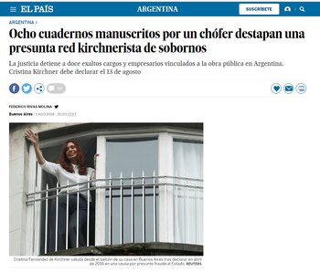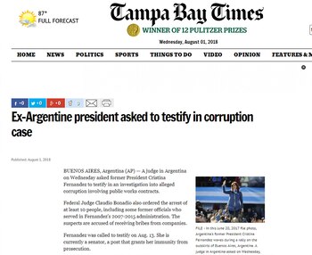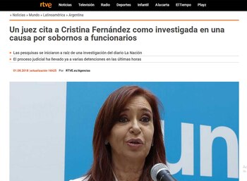 Y los diarios estadounidenses The Washington Post y Tampa Bay Times, y las cadenas CNN en Español y RTVE se enfocaron principalmente en la citación a declarar ante la Justicia para la ex presidente de la Argentina.