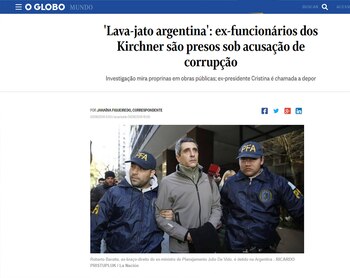 "Lava Jato en Argentina". Así lo definió el diario brasileño O Globo en el titulo de su nota sobre la detención de los ex funcionarios del gobierno kirchnerista ilustrada con una imagen del arresto de Roberto Baratta, ex mano derecha de Julio De Vido, ex ministro de Planificación en la Argentina.