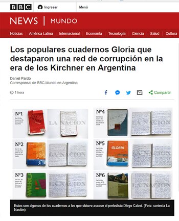 El diario español El País, la cadena británica BBC y el periódico peruano El Comercio también le dedicaron un gran espacio en sus ediciones online al hallazgo de los ocho cuadernos manuscritos por un chófer de Baratta que destaparon los pagos de millones de dólares en sobornos.
