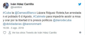 Como es habitual –denunció Rosa Rodríguez- el Partido Comunista de Cuba "con la tolerancia y compatibilidad de la Seguridad del Estado inició un acto de repudio en el que vocearon consignas favorables al régimen y ofensas a las Damas de Blanco".