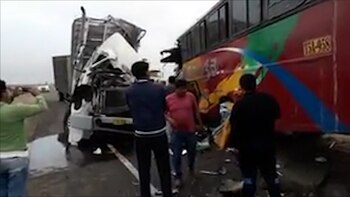 Las autoridades reportaron, además, que murieron otras dos personas en un choque entre un autobús y un camión en el kilómetro 845 de la carretera Panamericana Norte, a la altura del distrito de Mórrope, en la región norteña de Lambayeque.