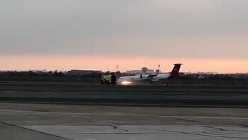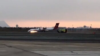 Bomberos y la policía se movilizaron a la pista de aterrizaje auxiliar a los pasajeros a retirarse a la aeronave.