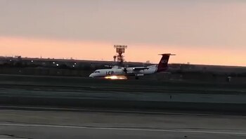 Testigo del hecho divulgaron imágenes en las redes sociales, en las que se puede observar el impactante momento en que la nave aterriza sin el tren delantero, provocando algunas chispas..