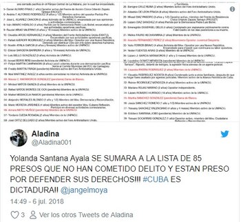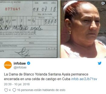 Junto a Santana Ayala, tres damas de blanco más cumplen prisión o están encarceladas a espera de una sanción, todas, por motivaciones políticas.