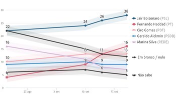 El candidato del Partido de los Trabajadores, Fernando Haddad, quedó en segundo lugar con un 16 por ciento de apoyo, un aumento de tres puntos porcentuales, pero está estadísticamente empatado con el centroizquierdista Ciro Gomes, que se mantuvo estable en un 13 por ciento.