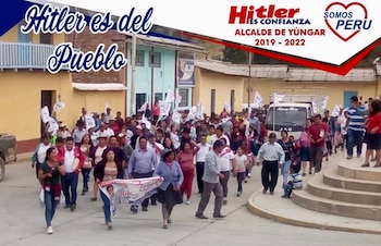 Eslóganes de campaña que aseguran que "Hitler es del pueblo" y "Hitler es confianza" han inundado la localidad peruana de Yúngar, en medio de una carrera por la alcaldía que ha logrado capturar la atención de los medios internacionales por los motivos menos esperados.